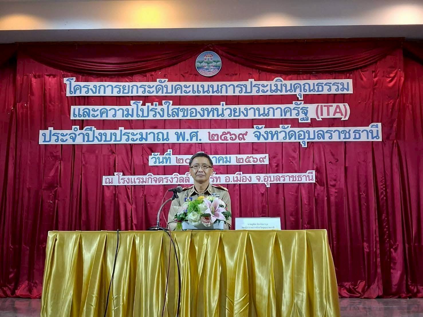 และความโปร่งใสในการดำเนินงานของหน่วยงานภาครัฐ (ITA) ประจำปีงบประมาณ พ.ศ. 2568 และสร้างความเข้าใจเกี่ยวกับแนวทางการประเมินคุณธรรมและความโปร่งใสในการดำเนินงานของหน่วยงานในภาครัฐ (ITA) ณ โรงแรมกิจตรงวิลล์ รีสอร์ท จังหวัดอุบลราชธานี โดยมีนายภูษิต น้อยโสภากุล รองผู้ว่าราชการจังหวัดอุบลราชธานี เป็นประธาน