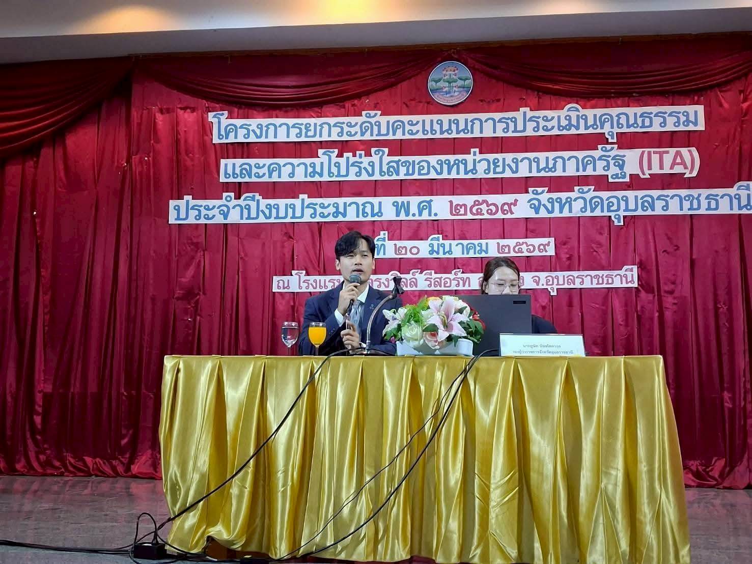 วันที่ 20 มีนาคม 2569 นายโกเมน ผิวพุ่ม อุตสาหกรรมจังหวัดอุบลราชธานี มอบหมายให้นางสาวสุรัสวดี กัลยาสิทธิ์ นักวิเคราะห์นโยบายและแผนชำนาญการ เข้าร่วมโครงการยกระดับคะแนนการประเมินคุณธรรมและความโปร่งใสในการดำเนินงานของหน่วยงานในภาครัฐ (ITA) ประจำปีงบประมาณ พ.ศ. 2569 จังหวัดอุบลราชธานี เพื่อถอดบทเรียนการประเมินคุณธรรม