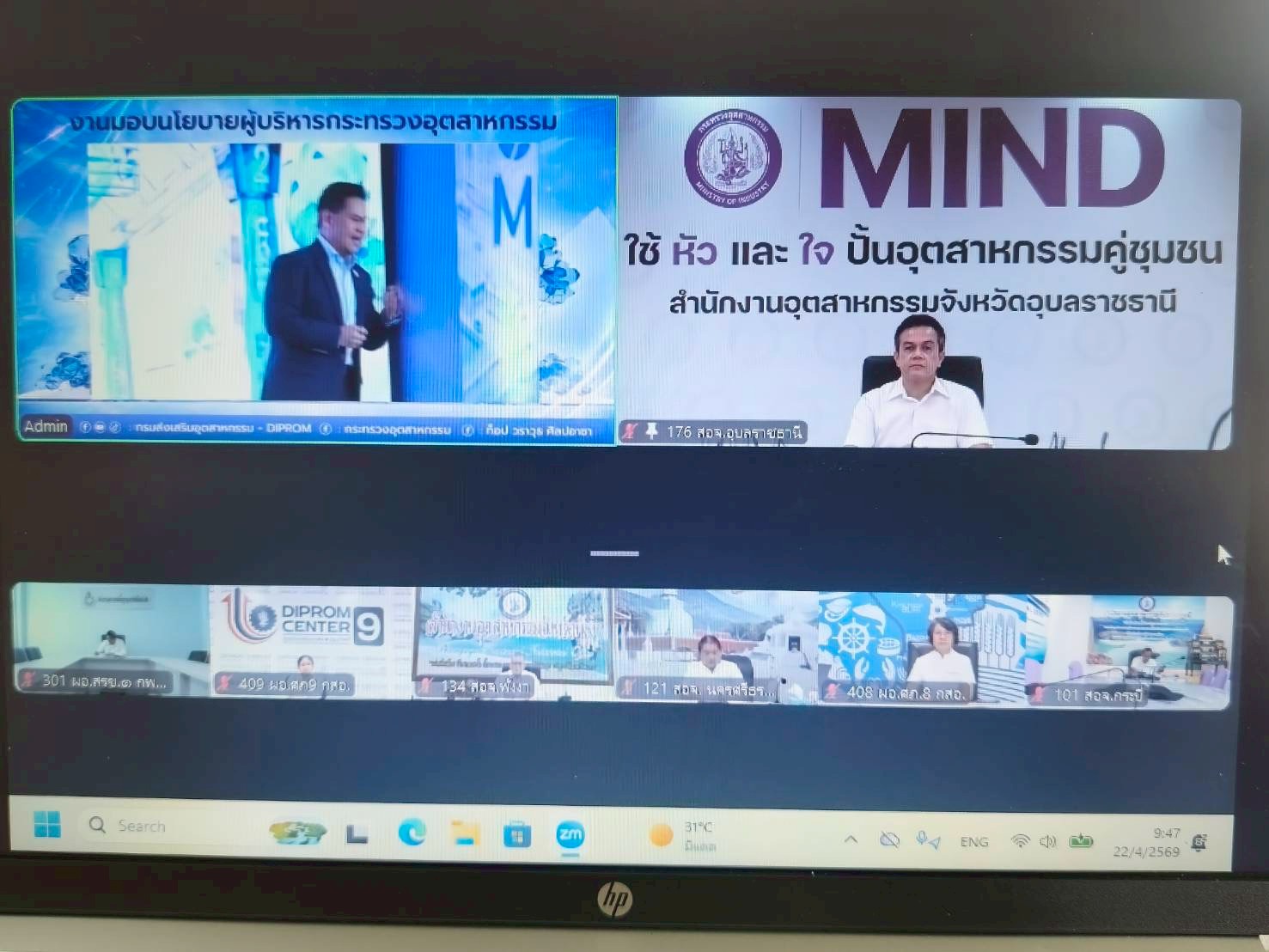 นายโกเมน ผิวพุ่ม อุตสาหกรรมจังหวัดอุบลราชธานี เข้าร่วมงานมอบนโยบายผู้บริหารกระทรวงอุตสาหกรรม โดย นายวราวุธ ศิลปอาชา รัฐมนตรีว่าการกระทรวงอุตสาหกรรม เพื่อมอบนโยบายและแนวทางการดำเนินงานให้แก่หน่วยงานภายใต้สังกัด อก. ภายใต้แนวคิด “One MIND อุตสาหกรรมหนึ่งเดียว” ที่เน้นการทำงานบูรณาการทั้งระบบ